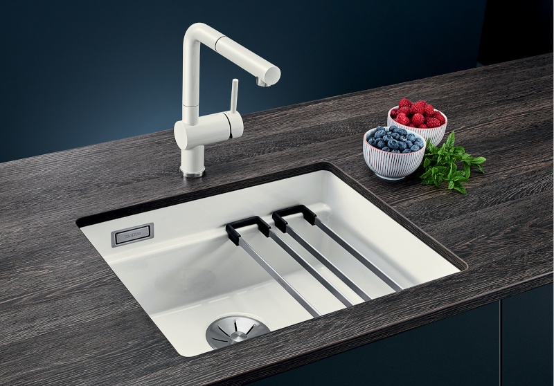 Etagon 500-U - вместительная ступенчатая мойка с функциональностью моечного центра теперь в материале керамика PuraPlus.
